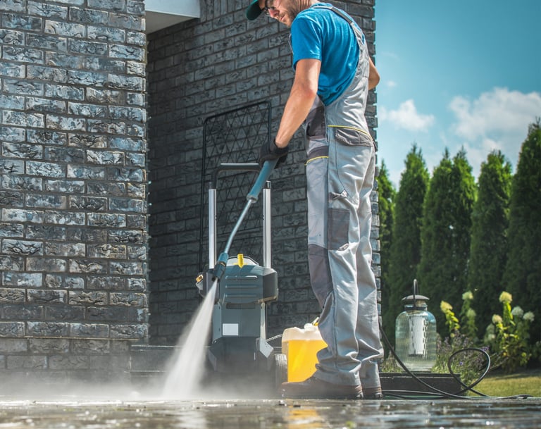 Nettoyage haute pression d'allées, terrasses, parkings et façades (pression adéquate et produits respectueux de l'environnement)